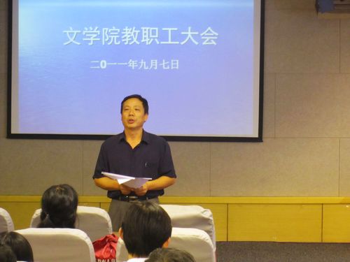 会上,王尧院长首先对我院张蕾、张珊等青年教师的教学工作表示了肯定,认为有了这些后起之秀的加盟,更加壮大了文学院的师资队伍。接下来,王院长主要从三个方面进行了工作汇报和部署。文学院将参与“援疆计划”,开设新疆班,这也对文学院教师的教学提出了要求,要充分理解和尊重少数民族的风俗习惯,更好地与新疆同学进行沟通和交流。另外,王尧院长强调了研究生的培养,要提高研究生质量,这也为“211”的验收和国家重点学科的申报打下基础。国际交流合作方面,我院将与马来西亚大学合作办学,而与尼日利亚的合作还在进一步商讨中。