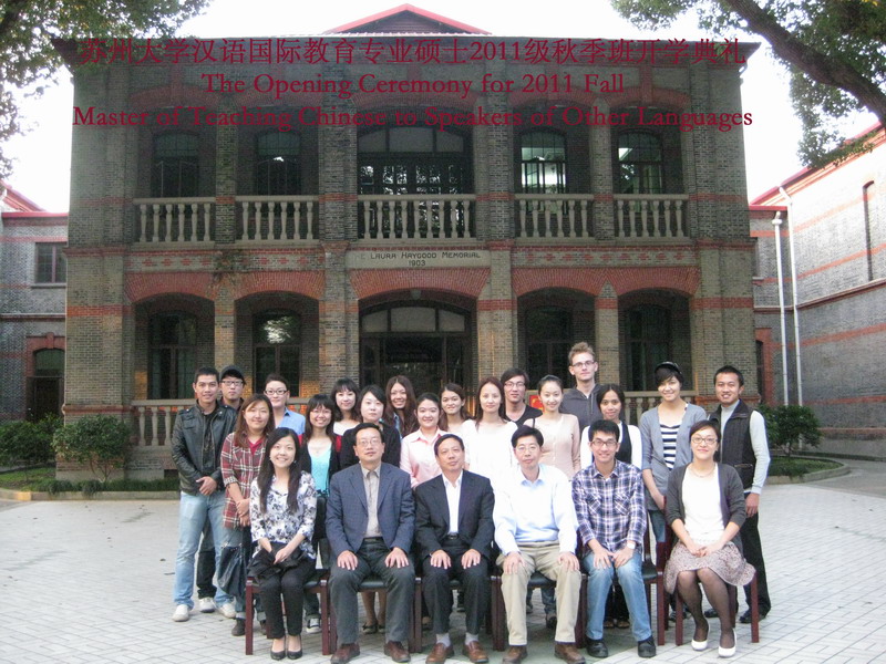 10月18日下午四时,苏州大学2011级汉语国际教育专业硕士开学典礼,于本部红楼会议中心217召开。苏州大学文学院迎来了来自美国、缅甸、泰国、马来西亚等九个国家的十七名外国留学生,这批留学生也是苏州大学的第4批汉语国际教育专业硕士研究生,他们获得了苏州大学设立的“孔子学院奖学金”。