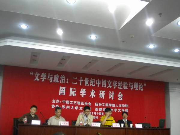 由中国文艺理论学会、绍兴文理学院人文学院主办,苏州大学文学院、首都师范大学文学院协办的“文学与政治:二十世纪中国文学经验与理论”国际学术研讨会在绍兴文理学院召开,研讨会为期三天(2011年10月14日-16日),来自日本、美国、中国社科院、中国艺术研究院、复旦大学、南京大学、浙江大学、上海交通大学、华东师范大学、武汉大学、西南大学等研究机构与高校的60多位专家学者,围绕“文学与政治的基本理论关系”、“作家创作与政治”、“中西方文论的政治化转向”、“文学政治学的建构”等话题进行了深度交流与探讨。我院文艺学专业博士生导师刘锋杰教授、侯敏教授参加了会议,刘锋杰教授参与设计了本次会议主题,并主持大会开幕式,发表了《为文艺再正名――新世纪文论界“重建文学政治维度”及其策略》的论文,侯敏教授发表了《论现代新儒家“客观悲情”中的诗学追求》的论文,受到与会学者的积极肯定。文艺学专业的多名博士生参加了会议讨论。