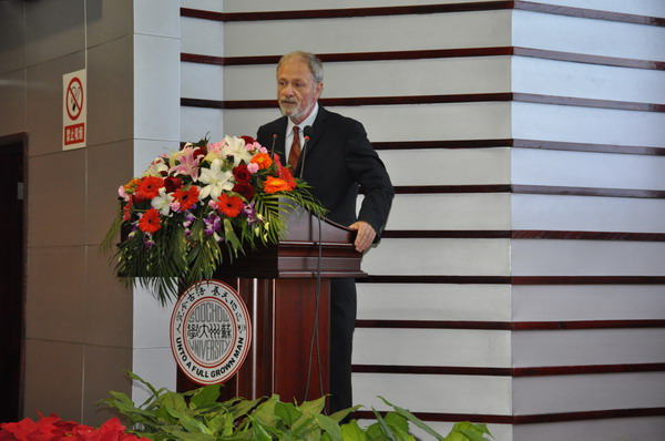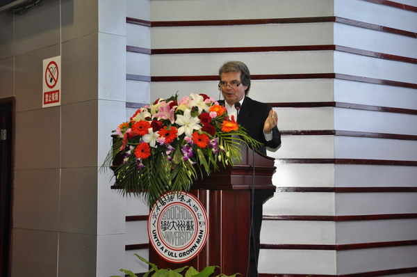 苏州大学副校长张学光教授用英汉双语致辞。