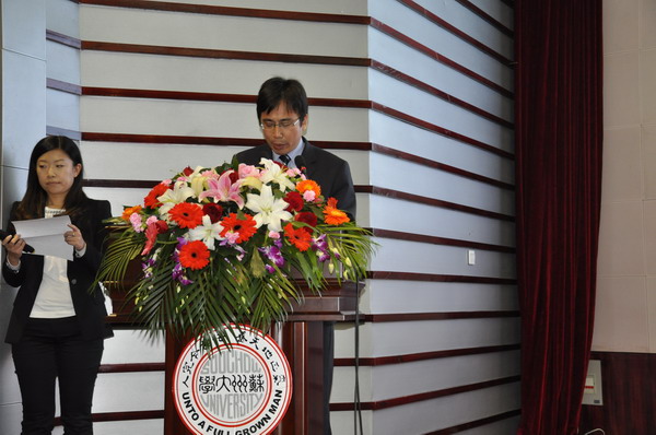 三点整,本次仪式主持人苏州大学国际合作交流处处长黄兴先生正式宣布典礼开始,他一一介绍了出席典礼的双方代表。
