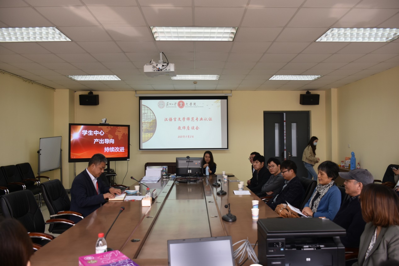 11月4日下午13:30,苏州大学汉语言文学、英语、音乐师范类第二级认证现场考查意见反馈会在天赐庄校区红楼会议中心217会议室顺利举行。江苏省教育评估院领导、相关校领导、相关职能部门负责人、认证专业所在学院负责人、认证专业负责人、公共基础课程所在学院代表以及教师与学生代表出席了会议。同时,根据疫情防控需要,会议采取线上线下相结合的方式,我院部分师生在分会场1005-5339参会。反馈会上,汉语言文学专家组专家洪早清教授、杨存昌教授、彭国忠教授和周艳校长分别就评估过程中发现的问题进行了反馈,并提出了建设性的意见和建议。汉语言文学专家组组长洪早清反馈了专家组的整体意见:专家组经过讨论一致认为,文学院重视师范专业认证工作,师范专业建设取得了较好成效;办学综合实力强,人才培养基础厚实;人才培养体系完善,自评自建工作取得较好效果;人才培养水平高,学生综合素质好。在课程评价方面,存在学校统筹指标不够、课程评价机制不够完善的问题;教师队伍建设、教师教育公共课建设问题需持续改进。汉语言文学专业负责人、文学院院长曹炜发言表态:在接下来六年中,我院将一一落实专家们提出的建设性意见,加强一流学科的建设,加强师范专业建设的投入。姚建林副校长代表苏州大学表示我校将细细梳理专家提出的意见,使形成的方案不断认证落实,促进系统评价体系的形成,将围绕立德树人的根本任务,以一流的办学理念,以评促建,促进师范人才的培养。最后,江苏省教育评估院邱白丽处长代表江苏省教育评估院向各位专家的辛勤付出和无私的奉献表示衷心的谢意,她提出在整改和建设过程中要进一步提高对师范认证工作的认识,做好专业建设的持续整改,认真规划并推进师范专业建设工作,她预祝苏州大学师范专业越办越好,再创辉煌。