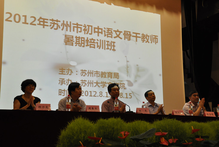 (通讯员:胡芳芳)2012年8月13日至8月15日,由苏州市教育局主办、苏州大学文学院承办的苏州市初中语文教师暑期培训班在苏州大学本部敬贤堂顺利开班授课。苏州市四百多位初中语文教师不畏酷暑坚持参加了为期三天的培训课程,仔细聆听了精心安排的讲座,一场场精彩讲座为学员们呈上了风味十足的知识盛宴。