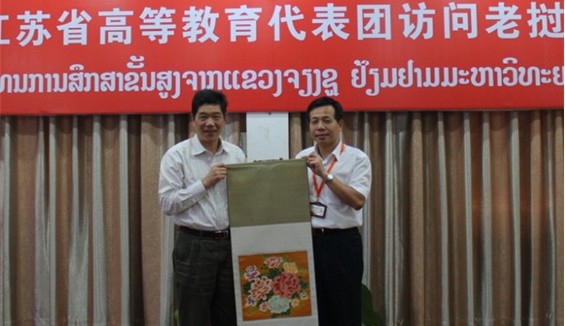 江苏省教育厅曾发布:“十二五”期间,我省将实施教育对外开放“六大行动计划”。实现全方位、多层次、宽领域的教育国际合作与交流。其中“江苏海外校园计划”中指出,鼓励和支持重点高校与世界一流大学共同创办3所左右中外合作的高水平大学。老挝苏州大学就是其中一所。2012年11月24日-26日,以江苏省教育厅副厅长朱卫国为团长的江苏省高等教育代表团一行六人访问老挝,并专程赴老挝苏州大学了解办学情况,赠送了写有“锦绣前程”的卷轴。