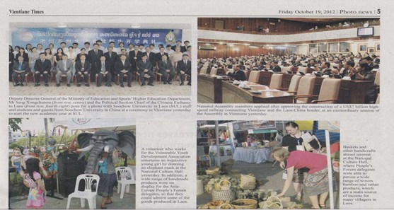(图11、老挝影响最大的英文报纸整篇报道老挝苏州大学2012年新生开学典礼)