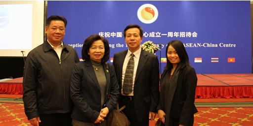 (图21、闻曙明先生与老挝驻中国大使馆副馆长西莎美.鸾珍达翁女士(左二)合影)