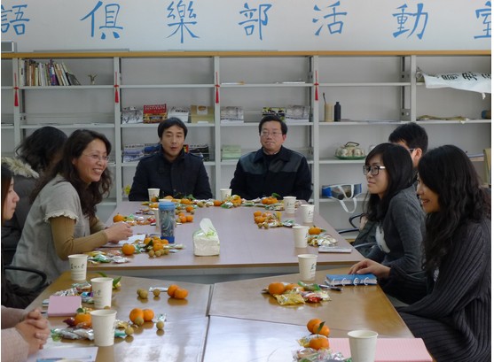 2013年1月10日,东校区东教楼留学生阅览室里暖意融融、笑语盈盈,文学院对外汉语教研室的近20位专兼职老师在此举行茶话会,总结既往工作,畅议来年计划。文学院副院长、汉语国际教育中心主任逢成华、汉语系主任王建军也来到了老师们中间,和大家共议学院的汉语国际教育发展。