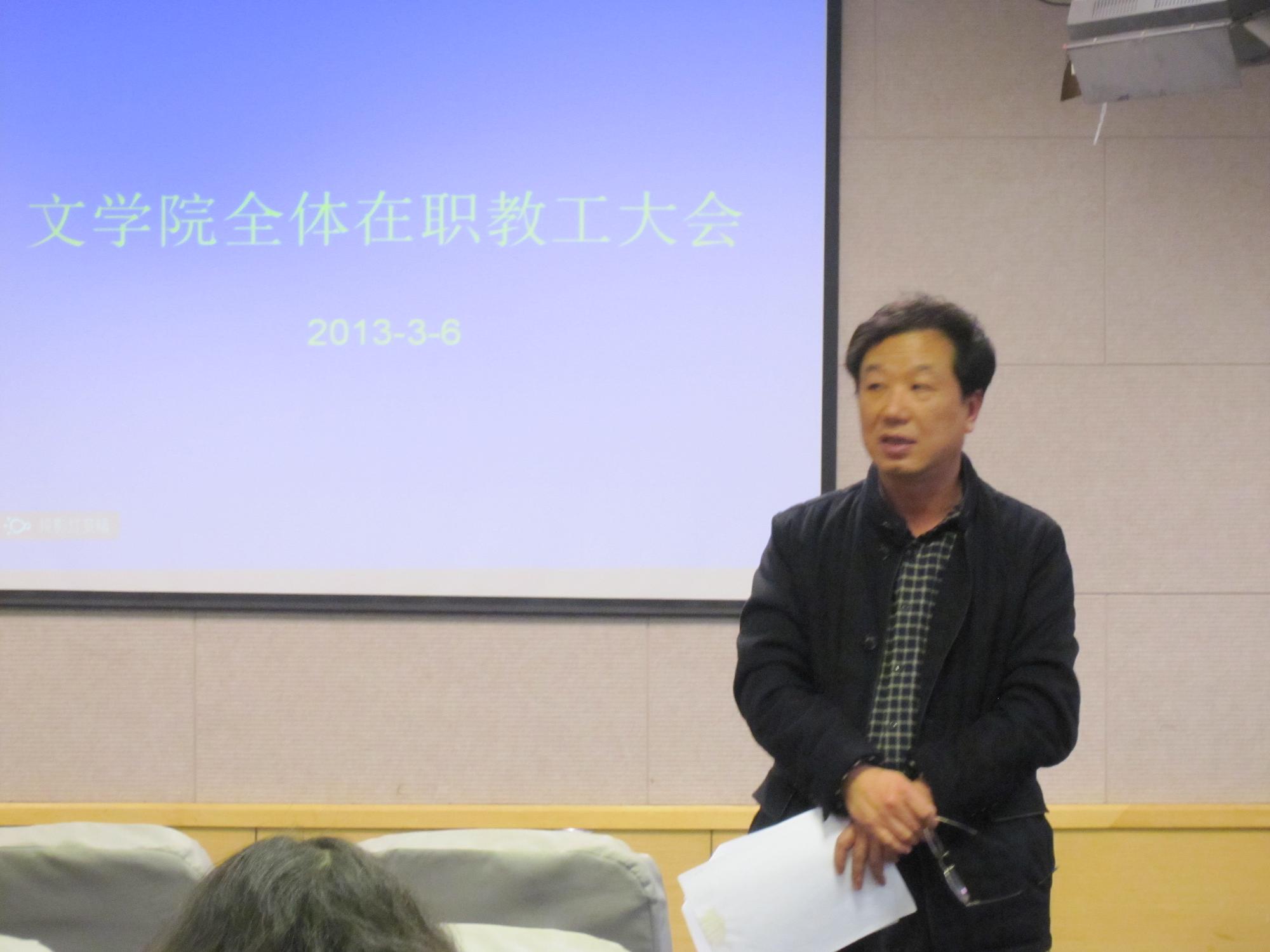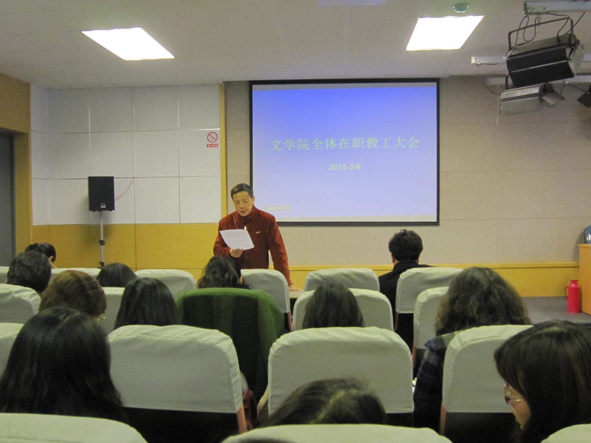 2013年3月6日下午2时,文学院全体在职教工在5339会议室召开了全院大会,会议由王六一书记主持。