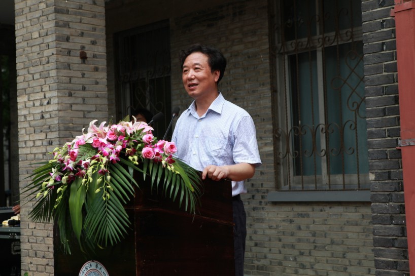 然后,由苏州大学文学院院长王尧致词。他的讲话深入浅出、风趣幽默,指出在借鉴西方文化、西式教育的基础上,更应该注重中国传统文化的发扬和传承。同时,王院长认为在当下全球化和市场化的影响下,强调回到大学本位,其关键是要秉持“文化自觉”和“文化自信”的意识,唯此才能保持中国传统文化的独特性。他提出,“中国最大的非物质文化遗产并非长城、天安门或是京剧、昆曲,而是汉语言文字,这是世界上独一无二的,是我们赖以生存的根”。讲话结尾,王院长发自肺腑地说道,此次成立的中国传统文化工作坊和汉语国际教育中心不是属于苏州大学文学院,也不是属于苏州大学,而是属于所有热爱中国传统文化的人。
