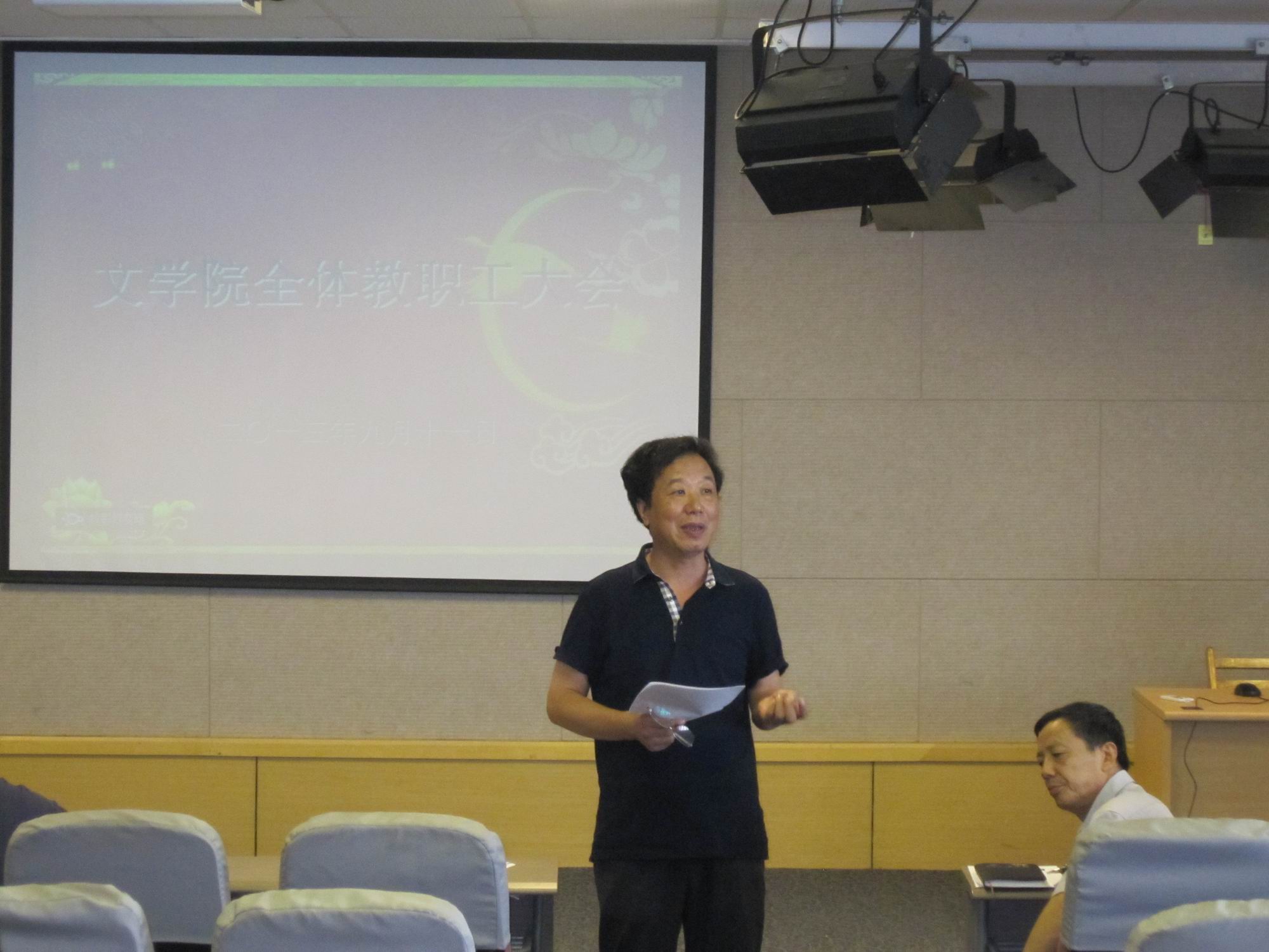 2013年9月11日下午 1点,我院在文综1005-5339室召开全体在职教工大会。会议由王六一书记主持。