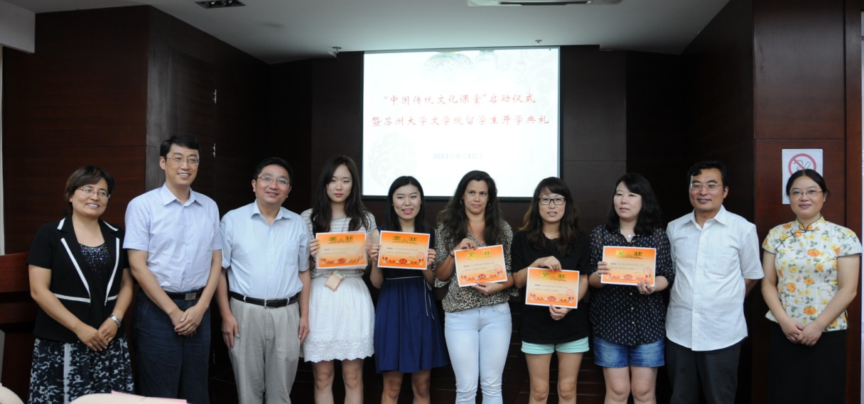 在桂花飘香的美丽季节,在如诗如画的古老校园,苏州大学博物馆博文讲堂里高朋满座,来自校内外十几个单位的近百名代表济济一堂,出席2013年苏州大学中国传统文化工作坊“中国传统文化课堂”启动仪式暨文学院留学生开学典礼。