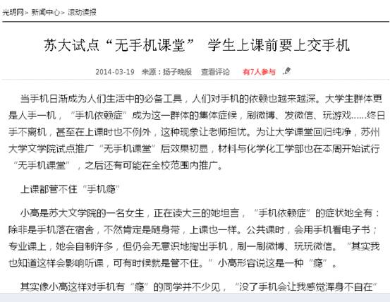3.苏大试点“无手机课堂” 学生上课前要上交手机_滚动读报_光明网