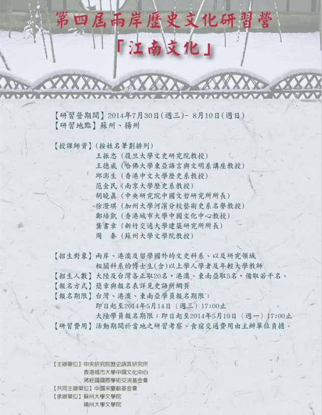 第四届两岸历史文化研习营「江南文化」招生简章