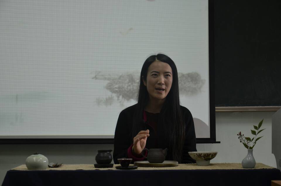 秋叶满校园,同往吃茶去。2014年11月21日下午13:30,在校本部的中国文化大课堂上,我们迎来了中国传统文化工作坊之手工艺作坊系列研修课程“苏州与茶”的第二讲,这次为同学们授课的依然是著名的茶艺专家、《新泾渭》杂志主编苏文娟老师。苏州大学的部分老师、中外本科生及研究生循茶香而去,又一次感受了茶的滋味和文化内涵。