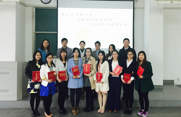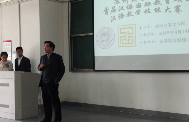 2015年4月8日下午13:30分,文学院首届汉语国际教育硕士汉语技能大赛初赛在文综楼1001-1401教室举行,本次比赛由汉语国际教育专业办公室组织,共24名中外同学参赛,文学院对外汉语教研室的7位老师担任了评委,14级汉语国际教育专业全体同学前来观赛。
