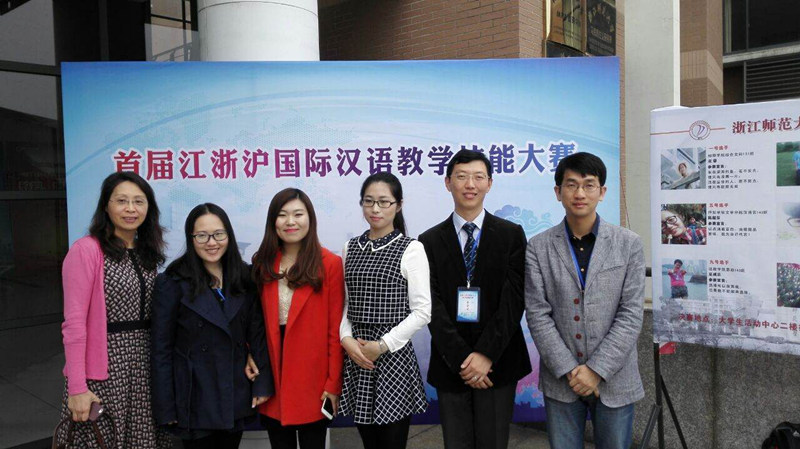 4月24日,首届江浙沪国际汉语教学技能大赛在浙江师范大学举行,来自华东师范大学、复旦大学、浙江大学、南京大学、上海大学以及苏州大学等11所高校的18名汉语国际教育硕士研究生同场比拼汉语教学技能。我院汉语国际教育硕士专业共13名师生赴浙江省金华市参加比赛,包括周国鹃老师、吉旭老师、陶家骏老师以及倪月如老师4位老师,中韩2名参赛选手以及前去观赛的7名同学。