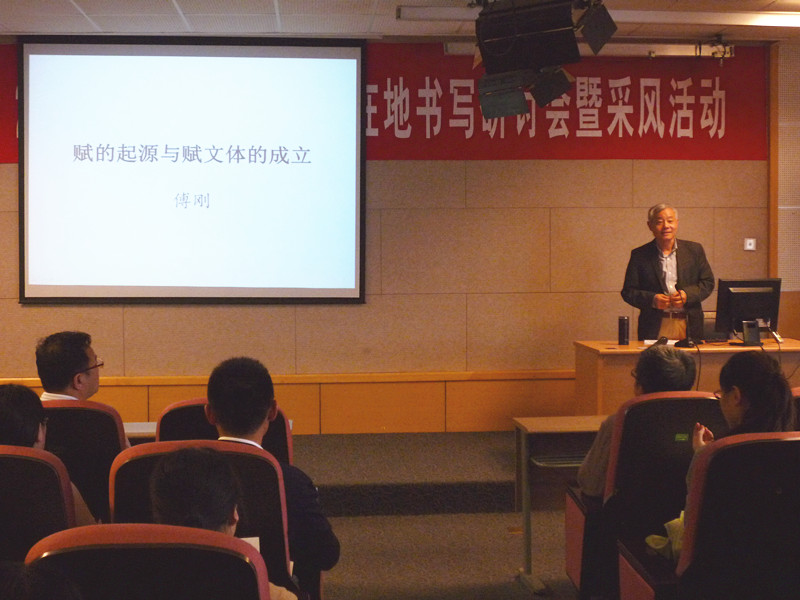 2015年5月18日14时,北京大学中文系教授、博士生导师、先唐文学研究专家傅刚教授,在苏州大学独墅湖校区文科综合楼5339教室为文学院师生带来了一场题为《赋的起源与赋文体的成立》的专题讲座。