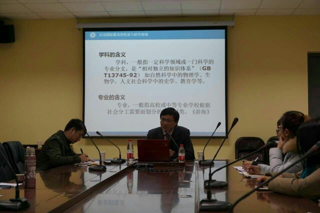 此次讲座的题目是“汉语国际教育的性质与研究领域”。张建民教授指出:汉语国际教育是学科还是专业,是汉语国际教学还是汉语国际教育学这一系列问题的提出背景复杂,是学科还是专业需要有一个界定。关于汉语国际教育的性质,在其名称上就有所体现,以及学科名称“汉语国际教育”与“国际汉语教育”这一名称的出现与由来。