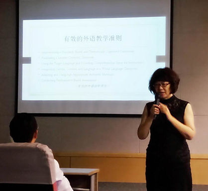 讲座中,张瑛老师首先介绍了21世纪中文教学在美国的发展现状及汉语课堂的真实情况,并结合实际的教学经历及案例,让同学们对美国汉语课堂教学状况有了较清晰的认识。随后,张瑛老师从21世纪外语教学的“5C”标准谈起,探讨了6条有效的外语教学准则以及中文教师的培养标准,重点介绍了外语沉浸教学法,结合教学实践中的有趣的教学活动,让同学们加深了对沉浸教学法的了解。张瑛老师认为课堂教学中要增加可理解输入,多采用游戏、小组活动等方式,才能更好地激发学生的兴趣,寓教于乐。接着张瑛老师介绍了马里兰州中文教师资格证项目的申请要求、课程内容及就业前景。最后张瑛老师就同学们最为关心的课堂教学方法、就业前景、薪资状况等问题耐心地为在座学生答疑解惑。