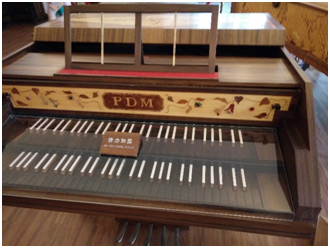 右图:中国厦门鼓浪屿钢琴博物馆的一架‘中国风’图案的羽管键琴。
