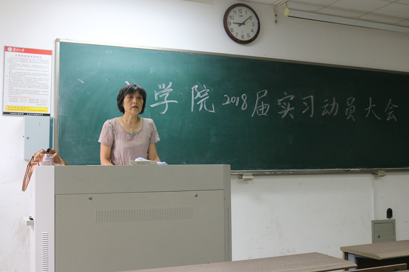 缪葵慈老师对前面的讲话进行了总结,并宣读了各实习点学校指导教师名单。她对毕业生在实习过程中应当注意的细则进行了归纳和强调。缪老师介绍了实习的意义,并指出“这是一个具有师范性质、兼具综合性和实践性的社会体验过程”,对于课堂试教、班主任职务以及材料上交等事宜也作出了详细说明。至此,文学院2018届师范班毕业生实习动员大会圆满结束。
