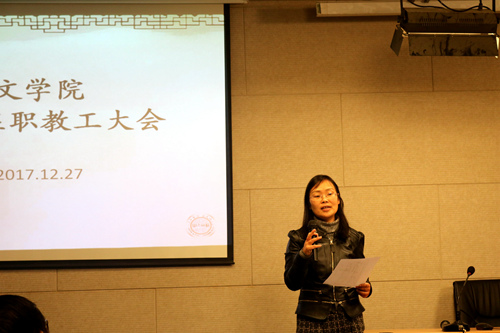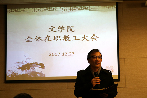 12月27日13:30,文学院全体在职教工大会于1005#5339顺利召开,学院党委书记孙宁华主持了本次会议。