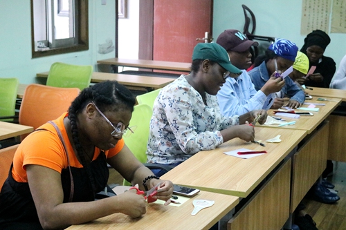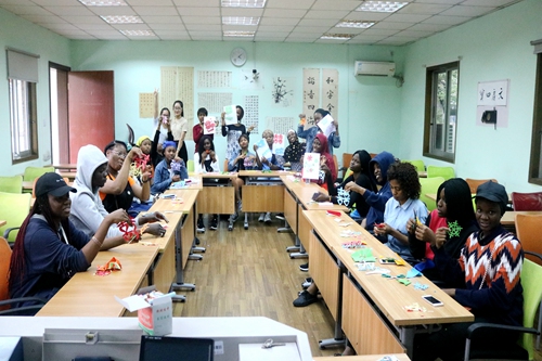 6月20日15:00,传统文化课堂之剪纸教学于苏州大学本部第四教室C教室顺利开展。课堂上,来自文学院的研究生俞婷、蔡霞带领着来自拉各斯的留学生一同领略的剪纸的魅力。