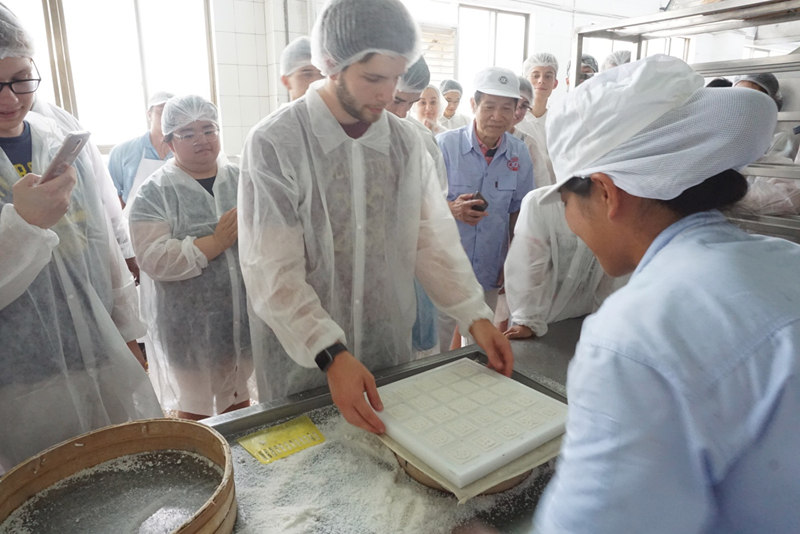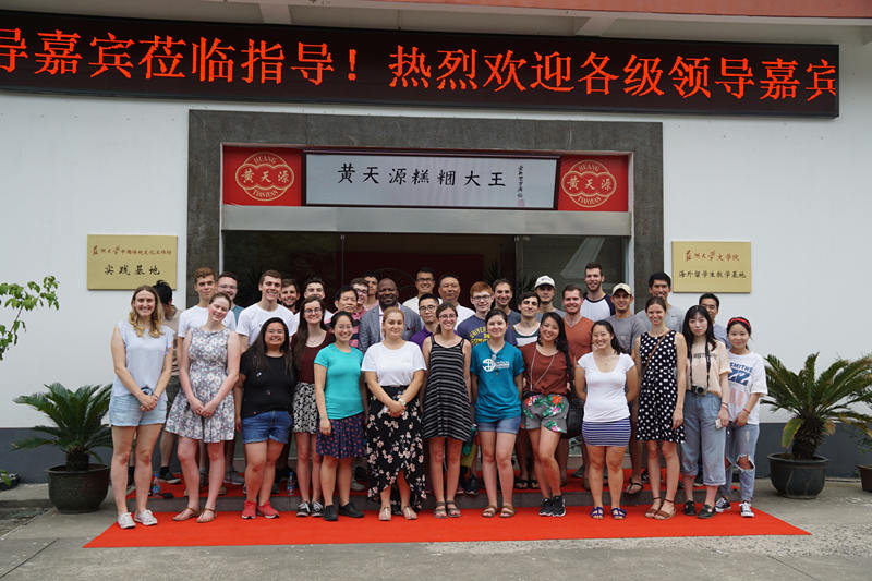 6月29日下午,苏州文学院组织美国国务院关键语言奖学金(CLS)项目学生去黄天源苏式糕团制作车间零距离体验了传统苏式糕团做法。借此契机,苏州大学文学院与百年老店黄天源签定全面战略合作协议,并举行“苏大文学院海外留学生教学基地”、“苏大中国传统文化工作坊实践基地”的挂牌仪式。