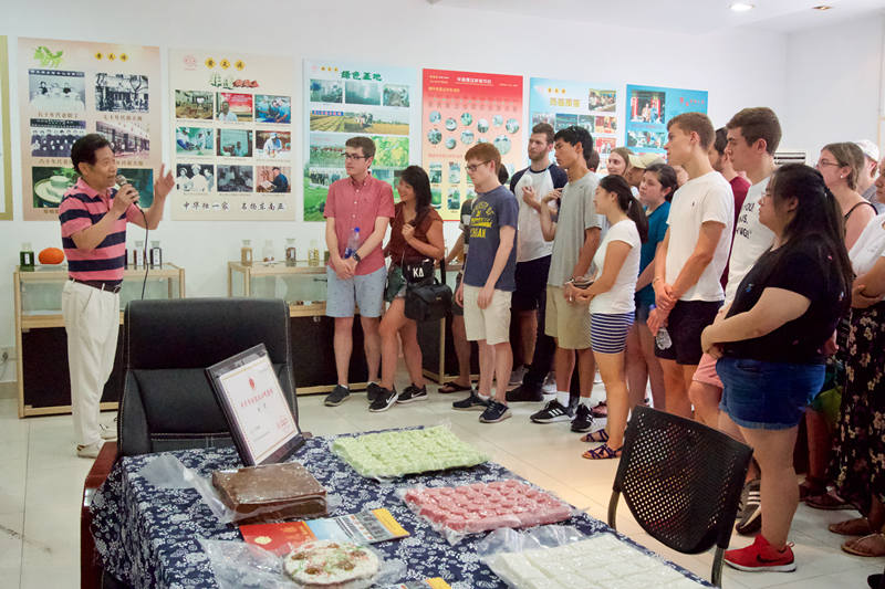 黄天源食品有限公司陈锡荣董事长给大家讲述了百年老店黄天源的“前世今生”。美国CLS项目留学生及苏大师生都对此非常感兴趣,聚精会神地听着关于这个传统手工制法的历史,并禁不住连连赞叹。