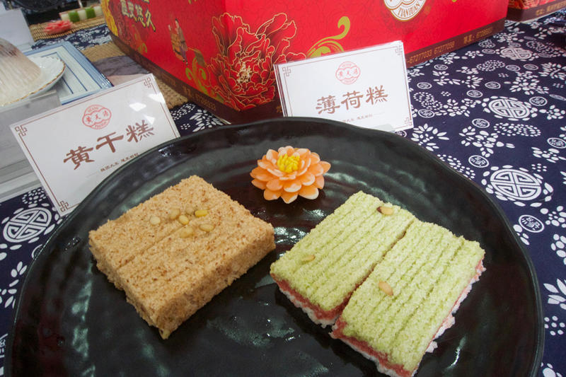 首先,师生来到二楼展厅参观黄天源各式各样的苏式糕团,玲琅满目,有神仙糕、撑腰糕、猪油糕……每一个点心都十分精致,参观的师生们一下子被吸引过来,纷纷赞叹中国传统技艺的精湛,忍不住掏出手机记录这些“艺术品”。