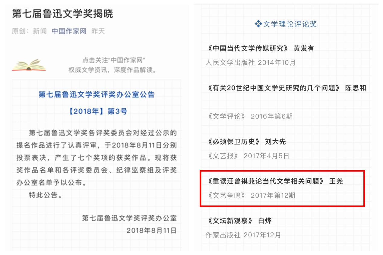 “王尧是一线的文学批评家,他的这篇《重读汪曾祺兼论当代文学相关问题》堪称文学批评的典范,他从汪曾祺这样一个具有重新阅读价值的经典性作家入手,探讨当代文学史的相关问题,堪称切口小,思考深。”著名评论家、江苏省作协副主席汪政说。