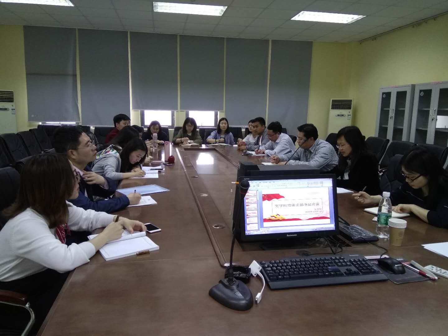 5月11日下午两点,由文学院党委主办的全体支部书记工作会议在1005#5335教室顺利召开,出席此次工作会的有文学院党委书记孙宁华、副书记阴浩,以及文学院各党支部支部书记、支部委员。