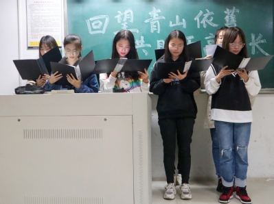 接着,活动部、外联部和外宣部依次带来了舞蹈《酒醉的蝴蝶》、歌曲《当你》与诗歌朗诵《雨巷》。精彩的表演带动了全场的气氛,将大会气氛推向了高潮。