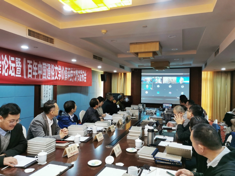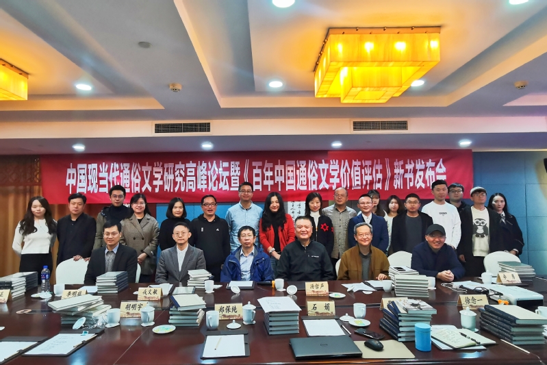 2021年11月21日,中国现当代通俗文学研究高峰论坛暨《百年中国通俗文学价值评估》新书发布会在苏州南林饭店召开。开幕式由苏州大学文学院教授、《百年中国通俗文学价值评估》总主编汤哲声主持。苏州大学人文社会科学处处长于毓蓝,副处长尚书,江苏凤凰出版社副总编戎文敏,苏州大学文学院院长曹炜教授出席开幕式。来自复旦大学,浙江大学,上海师范大学,澳门大学,北京大学,南开大学,安徽大学,中国作家协会,西北大学,上海大学,江南大学,华中师范大学,扬州大学等高校的近20位专家学者及《百年中国通俗文学价值评估》课题编撰团队以线上线下相结合的方式共同参加了本次论坛暨发布会。
