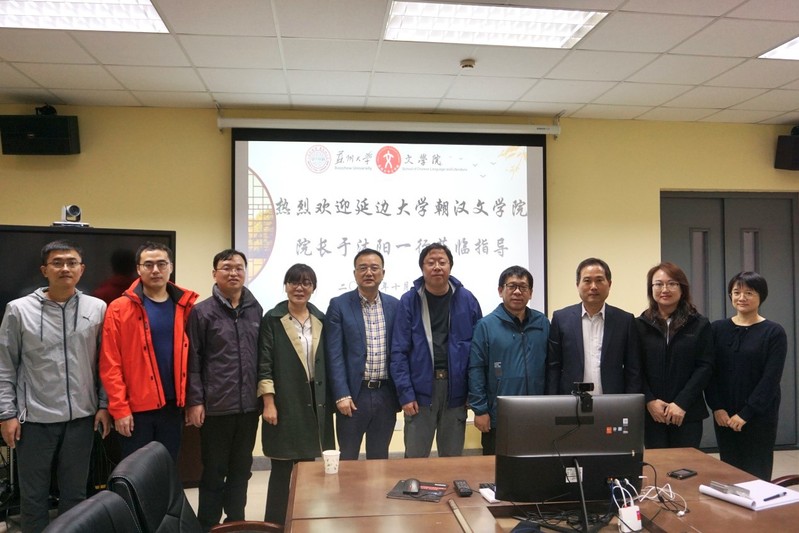 首先,文学院副院长周生杰对延边大学朝汉文学院副院长于沐阳一行的到来表示热烈欢迎。朝汉文学院汉语言文学专业学科主任王启东介绍了与会老师的情况后,朝汉文学院副院长于沐阳介绍朝汉文学院的建设渊源,指出外国语言文学是朝汉文学院的双一流学科,亚洲语言文学是龙头学科。