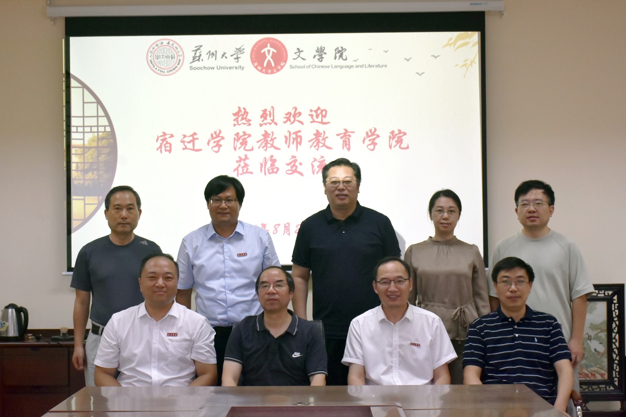 8月22日上午,宿迁学院教师教育学院陈虎书记带领班子成员一行莅临我院,双方就学科发展、专业建设以及学生培养等问题进行交流。文学院院长曹炜、党委书记夏凤军,副书记阴浩、副院长周生杰、副院长赵曜、院长助理陈昌强、裘兆远、唐文治书院办公室副主任薛羽婷等出席了本次会议。