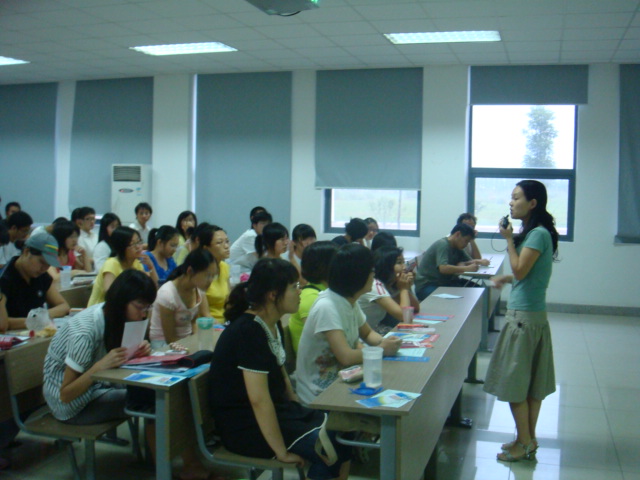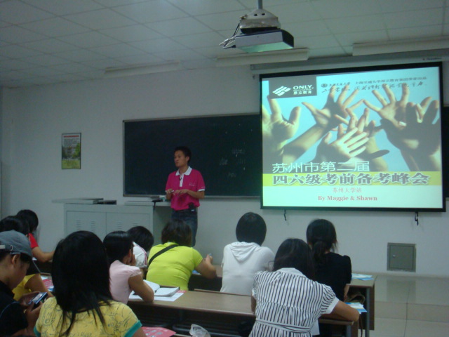 讲座的上半场由徐燕老师担任主讲。徐老师首先以一个轻松的提问活跃了全场的气氛,随后展开了她的讲解。鉴于四六级考试的改革趋势―――即2009年起部分大学四六级实行机考,徐老师对机考的试卷内容�各项的比重等做了简单的介绍,并着重讲解了应对这种新的考试形式一系列的策略和方法。徐老师带来的新信息�好方法使在座同学受益匪浅。接下来,徐老师转入对传统四六级考试备考指南的讲解。作为昂立语言培训中心的教务主任兼四六级项目部主任,徐老师深谙四六级考试的模式,因此阐述起来游刃有余,切中肯綮。在有关作文的讲解,徐老师从阅卷老师和考生两个角度做了讲说。曾担任过四六级阅卷工作的徐老师,向同学们展示了作文的评分标准,透露了高分作文秘诀,并突出强调了一些应试的小技巧。在讲解听力的应试技巧时,在展示有效的答题原则之前,徐老师提出了自信的重要性,她认为,良好的心态引领着此部分的成功。在此过程中,徐老师通过举例�互动等,调动了同学们的积极性。