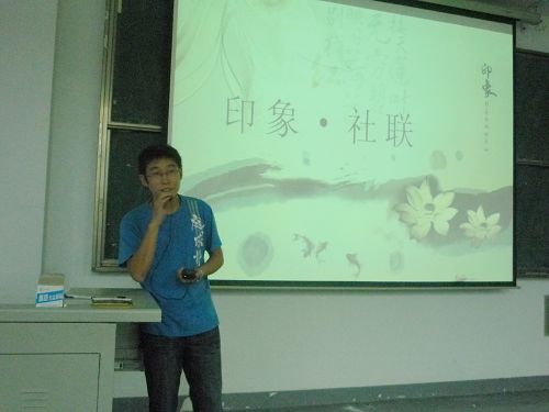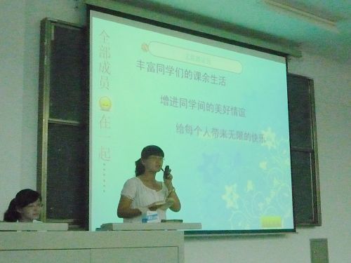接着是社团联合会的主要负责人王洋,他以“印象社联”为切入口,诙谐幽默、不紧不慢对社联进行了总体介绍。之后社联的办公室、监察部、创意活动部各个部长又上台演示本部的PPT。引起反响最大的当属创意活动部,其部长只以一组精心制作别有创意的军训视频就博得了台下掌声不断。