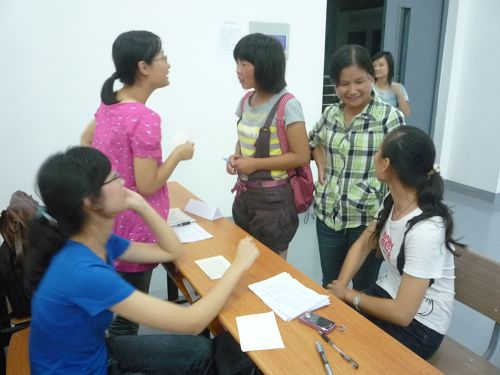 学生会招新宣传完毕已至21:50,尽管有点晚了,同学们还是很耐心地根据自己的喜好与能力踊跃填写报名表,并于第二天晚上参加了第二轮的招新面试。面试现场如火如荼,热闹非凡。
