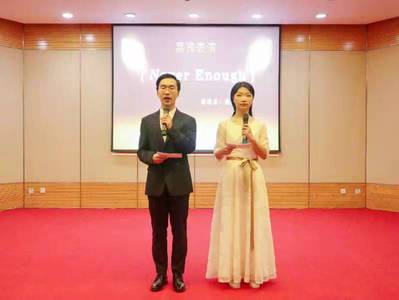 首先,潘育鹏同学进行了暖场表演,为大家带来了动听的英文歌曲《NeverEnough》。