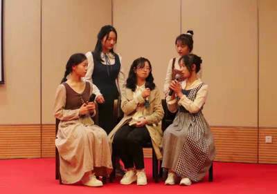 来自行政二班的另一个剧组表演了短剧《小妇人》,讲述了马奇家的四姐妹在帮助Sally的过程中逐步找到自己的理想故事。短剧体现了现代与过去的交流以及理想与现实的交锋,鼓励女性勇敢追梦,立意深远。