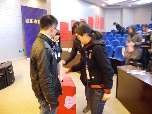 随后,主持人宣读各委员候选人简介,在这过程中,委员候选人一一与代表见面。此后,大会筹备工作组组长茆萌同学向大会提交选举办法和选举工作组成人员建议名单,选举也就此正式展开。在代表们有序地选举之后,紧张的计票工作也随即展开。在计票的同时,大会筹备工作组材料组蒋晨�同学向大会提交了《章程条例修改报告》,大会筹备工作组提案组组长周扬同学向大会提交了《提案工作报告》,这两个报告也获得了一致通过。除此以外,在计票过程中,大会也本着人性的关怀,播放了文学院在一些大型活动中精彩的舞蹈表演和合唱表演,让大家在浓厚的政治性氛围中,又一次体验了苏州的柔美与秀丽。