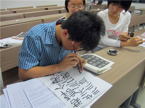 2011年5月16日晚七点,在文综楼1002幢2101室,文学院社团联合会云天书画社举办了软笔书法培训班,本次活动由云天书画社社长朱尧负责,众多软笔书法爱好者参与了本次活动。
