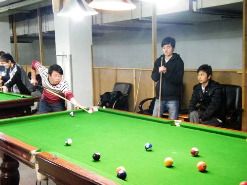 本次比赛不仅有来自文学院的同学,其它学院一些热爱台球的朋友们也积极响应,通过自由报名的方式参与到活动中。正因为本着自由报名的原则和选手门本身对台球的热爱,比赛现场尤其的活跃。这次比赛的方法简单说明一下:1、比赛规则采用中国台球协会颁发的最新的台球规则2、比赛分预赛,半决赛,总决赛三个阶段进行,预赛阶段为小组循环赛制,半决赛和总决赛阶段为单败淘汰赛制3、小组循环赛采取3局2胜,每组4人,出线前2名。 预赛出线人员进入半决赛,总决赛阶段。4、单败淘汰赛采用复赛5局3胜制,半决赛3局2胜制,决赛3局2胜制。5、小组循环赛的伦次依次为1-4,2-3,1-3,4-2,1-2,3-4。裁判员与仲裁由主办方选派。决赛最后获胜的三名将会的得到由主办方提供的精美礼品一份。