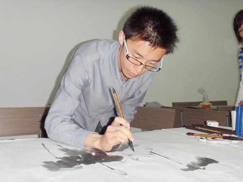 活动开始时,由文学院宣传部部长李腾对“苏玉轩”进行了简短的介绍,紧接着是由到场嘉宾刘钦博、周游等人为同学们表演书法绘画艺术。现场十分热闹,也有爱好书法的同学直接在现场练习,向前辈们学习。