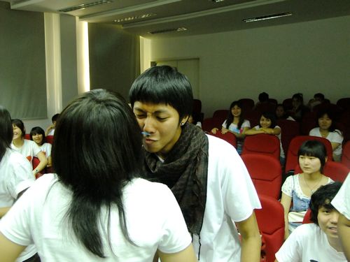 接着是游戏环节,传吸管,分为中国队和泰国队,每队十人,用上嘴唇和鼻子夹着吸管传递,限时为3分钟,传的吸管个数多的队伍获胜,结局是皆大欢喜的,两队都传了23根。第二轮时,中国队和泰国队每队交换五人继续传,现场一片欢声笑语,曾经那么快乐,现在依然如此。
