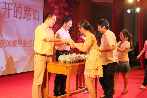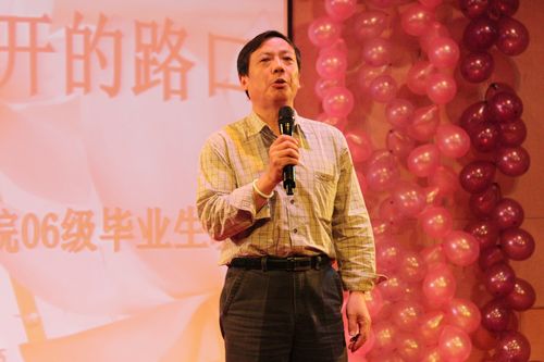 首先,文学院党委书记王六一老师上台送上了寄语。感慨于“年年有今日,岁岁有今时”的王老师,用六个字真挚地表达了他的心声。祝贺,祝贺06级同学经过四年的努力拼搏,终于完成了自己的学业;祝愿,祝愿所有的毕业生能在未来把握好人生的航向,将人生的道路越拓越宽;感谢,感谢此次晚会所有的组织者、表演者及参加者。最终,王老师预祝晚会取得圆满成功!