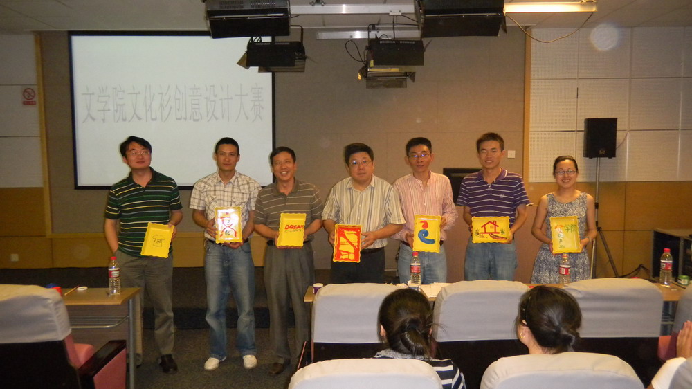 文化产业专业文化衫创意设计大赛决赛于2010年6月21日下午3点半在1005-5339教室火热举行。文学院党委王六一书记、凤凰传媒学院平面设计专家王伟明教授、赵丁丁老师,以及文学院成教办主任黄晓辉、分团委书记纪金平等老师莅临大赛现场并担任评委。