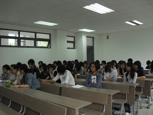 科协的指导老师纪金平老师首先上台宣读了科协临时工作组成员的名单和优秀干事名单,并且宣布了科协刚刚成立的一个新部门―企划部。接着纪老师又总结了科协一个学期以来取得的不错成果。“我们的学术应当以什么形式展开?”纪老师以这样的疑问来鼓励我们同学之间多多举办像礼拜三学术沙龙这样的活动,他说这样的活动非常能锤炼我们文院学生的学术水平。最后他向那些未能进入科协临时工作组但也为科协付出过很多的学生表示:我们已经在科协的这个舞台上得到了锻炼,我们已经可以不留遗憾了。