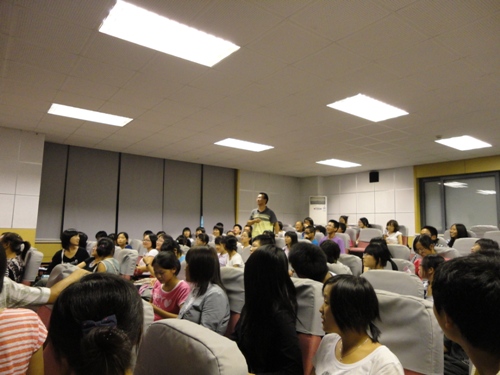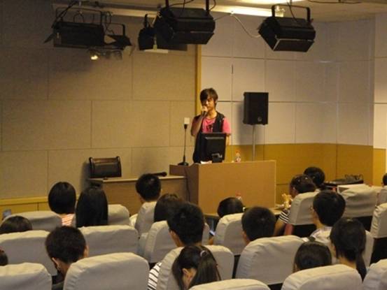 一开始,由来自文学院团委副书记钱宇同学发表了讲话,她提出:这次的暑期社会实践活动是以践行科学发展观、服务新农村、建设新家园为主题的,并且依托学院老师和学生两头互动,从过程指导社会实践工作;依托新闻媒体成分报道,从后期彰显社会实践工作。这次的社会实践还有三大特色,即学以致用、实践出真知以及润无细无声。